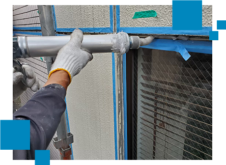 ひび割れや外壁の隙間などから雨水が浸入する箇所に、専用の樹脂を注入し内部から防水処理を行います。外壁内部までしっかりと補修することで、その後の補修工事や防水工事の品質にも関わるため、細部まで丁寧な施工が重要です。